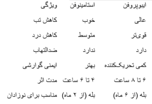 • استامینوفن گزینه ایمن‌تری برای نوزادان کوچک‌تر است.
