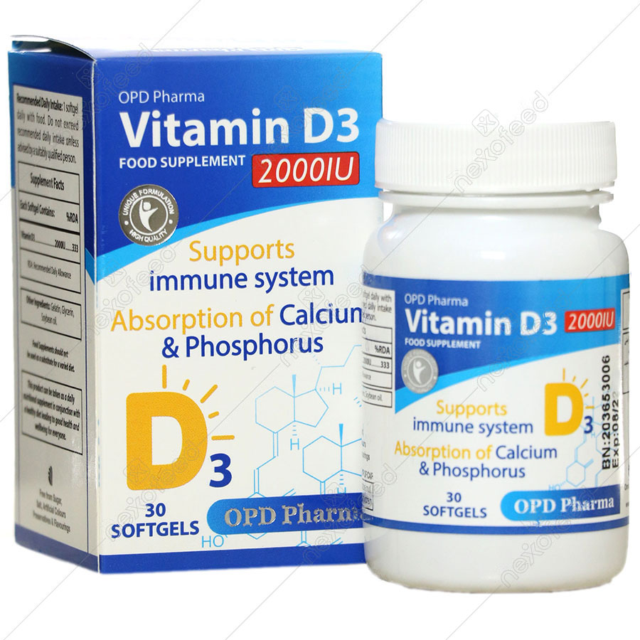 ویتامین د3 او پی دی فارما 2000 واحدی (30 عددی)